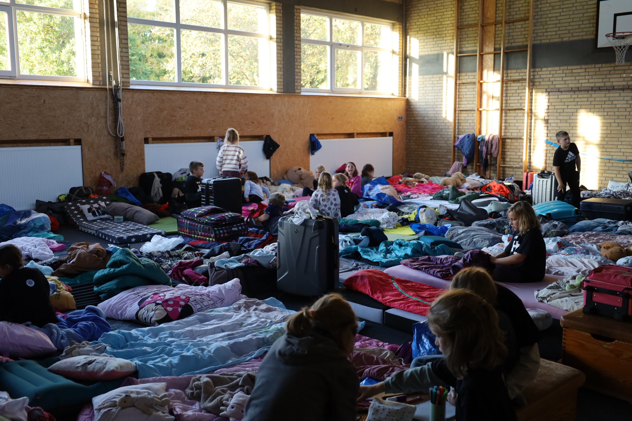 Sonne, keine Wolke am Himmel, kein Wind. So begrüßte uns das Wetter am Anreisetag. Diesen Schwung des goldenen Herbstes haben wir als Team direkt mitgenommen. Und den Aufbau super schnell erledigt. Zelt, Turnhalle und die weiteren Räume waren also genauso bereit, wie das Team, als wir um 10:00 Uhr die Pforten zum 16. Zeltlager in der Turnhalle geöffnet haben. Und ihr seid scheinbar genauso bereit gewesen, denn sowohl Kinder wie auch Eltern strömten samt Gepäck aufs Lagergelände. Alle konnten es kaum erwarten, dass es losgeht. Nachdem die Eltern dann „endlich“ wieder weg waren, haben wir zusammen die Liegewiese aufgebaut und die Betreuer*innen schon mal kennen gelernt. Im Anschluss gab es auch schon direkt das erste Mittagessen und zwar richtig leckeres Hühnerfrikassee mit Reis. Gut gestärkt ging es weiter mit dem Kennenlernen des Lagergeländes der anderen Teilnehmer*innen und des Teams. Beim ersten Eventblock, kurz EVB, namens „Kennenlernen-Uhr“ mussten an zwölf verschiedenen