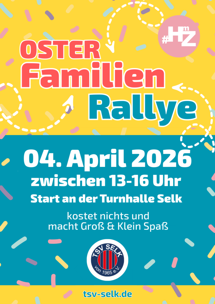 Auch in diesem Jahr veranstalten wir unsere beliebte Familien-Rallye. Und dieses Jahr wieder zu Ostern. Kommt vorbei und löstauf der Strecke die Rätsel und findet unsere Hinweise auf die richtige Lösung.
