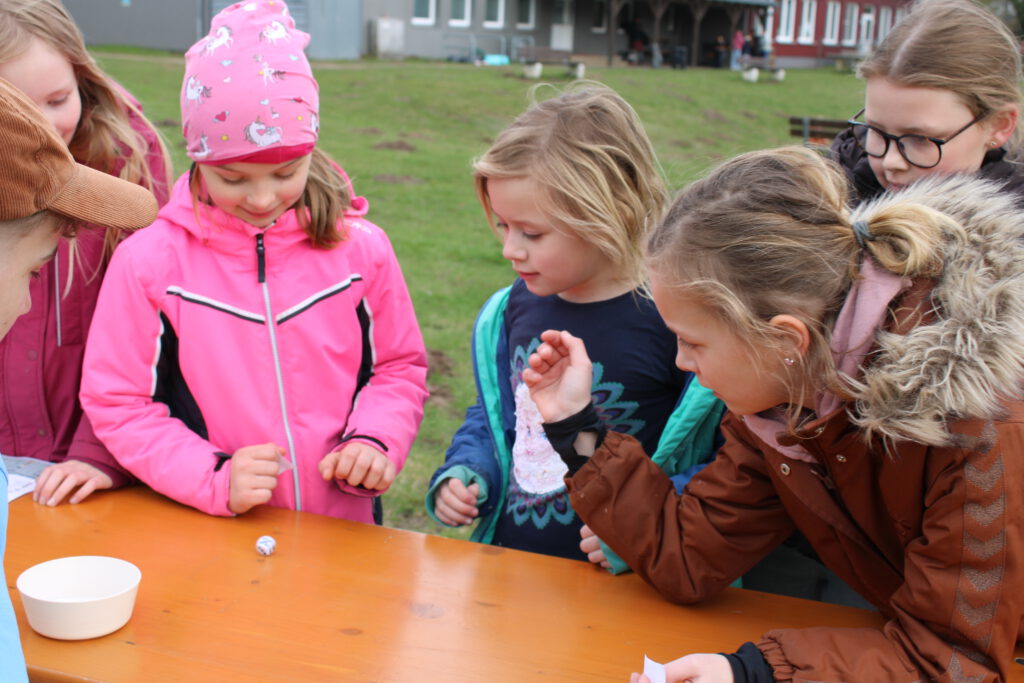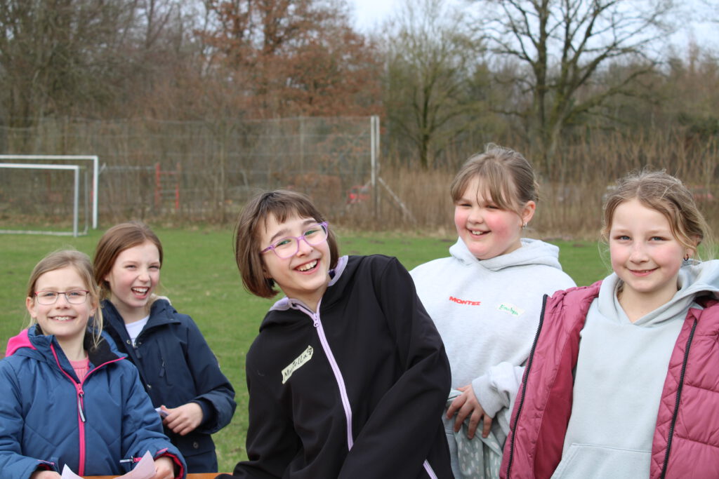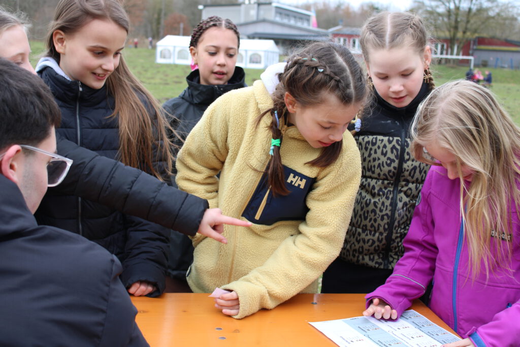 Nach dem ersten Besuch am Kiosk und einer kurzen Ruhepause ging es direkt weiter mit dem ersten Großspiel: „Siedler von Loch Ness“. Dabei konnten die Kinder in ihren Gruppen eigene Burgen bauen. An verschiedenen Würfelstationen sammelten sie Rohstoffe, mit denen sie wichtige Bestandteile ihrer Burg errichten konnten. Teamarbeit, Kreativität und Spaß standen dabei im Vordergrund.